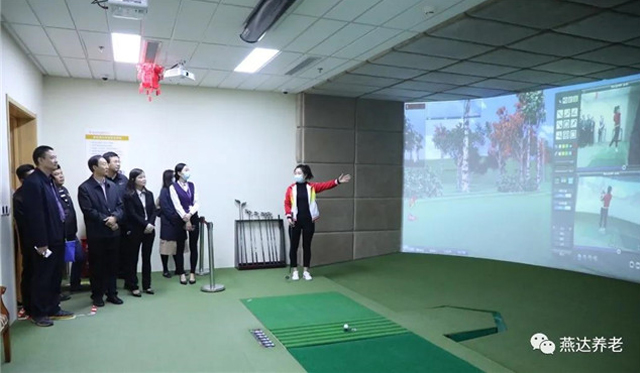 在燕達(dá)養(yǎng)護(hù)中心,調(diào)研組一行參觀考察了賓館式養(yǎng)護(hù)區(qū)、家居式養(yǎng)護(hù)區(qū)、老年病科、老年大學(xué)、書(shū)畫(huà)室、3D模擬高爾夫球館、健身俱樂(lè)部及相關(guān)文娛配套設(shè)施。