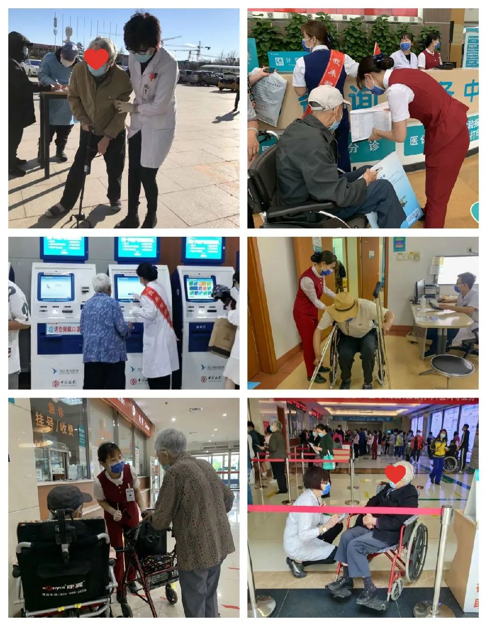 院內還設立老年患者幫扶崗、一站式服務中心,免費為老人提供輪椅、平車、雨傘、充電寶等,方便老人就診。針對行動不便無家人陪診的老人,門診導醫全程陪同老人就診、檢查、接送透析患者等。同時,院內還設置老人專職服務員,為老人就診提供了便捷服務。